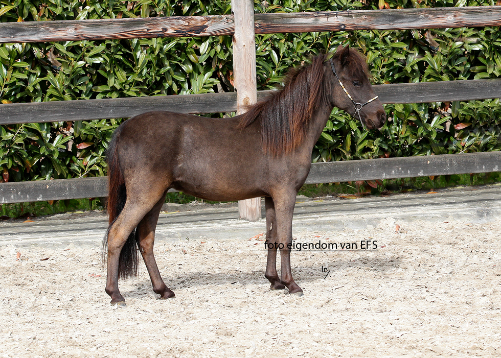Zilver 2de premie Goedgekeurde hengst SMOKEY BLACK 0,71m |