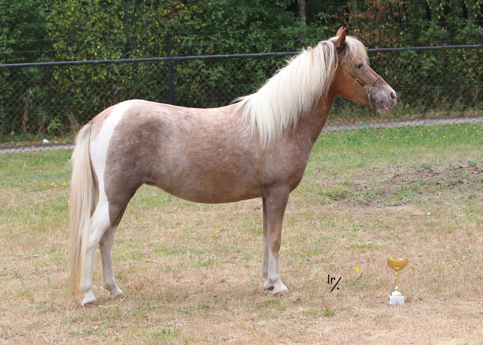 Goud 1ste premie Zilver 2de premie Goedgekeurde hengst ZWART PINTO 0,86m |