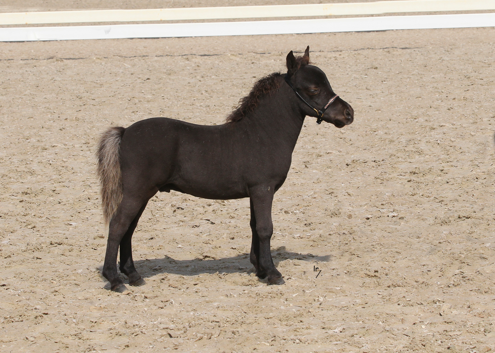 Goud 1ste premie Goedgekeurde hengst ZWART PINTO 0,79m |