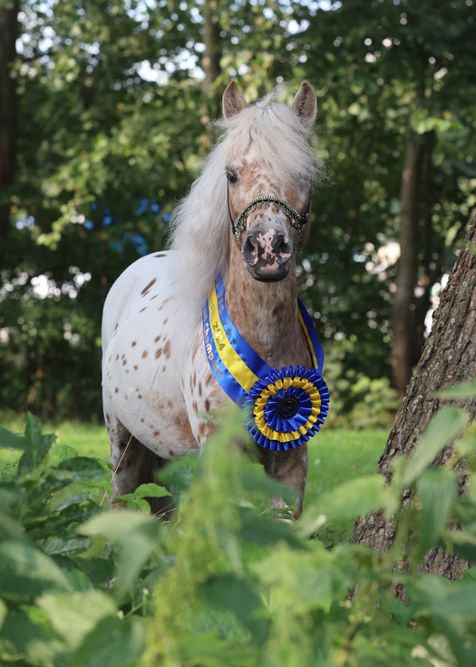 Goud 1ste premie Goedgekeurde hengst BRUIN PINTO 0,89m |