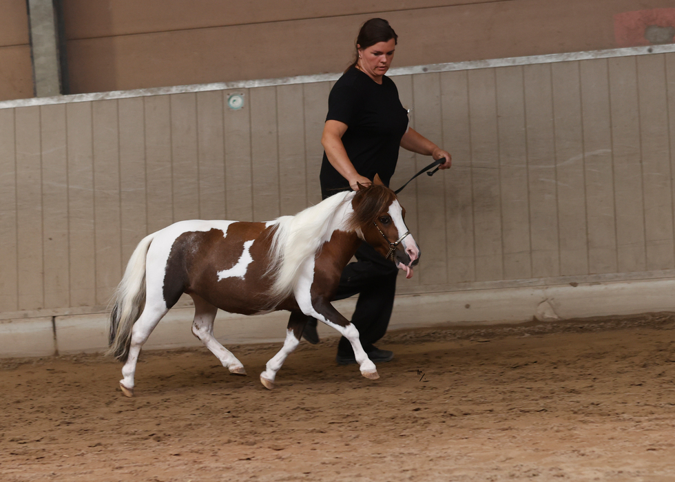 Goud 1ste premie Goedgekeurde hengst ZWART PINTO 0,79m |