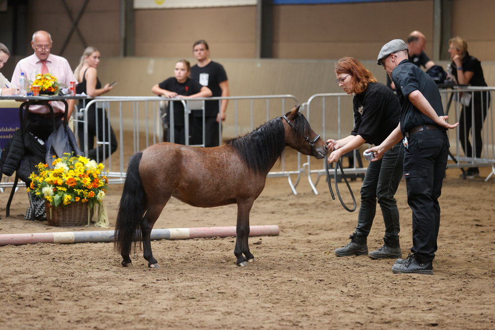 Goud 1ste premie Goedgekeurde hengst BRUIN PINTO 0,89m |
