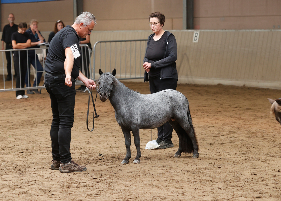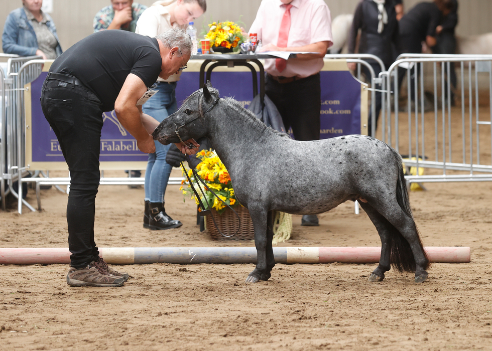 Goud 1ste premie Zilver 2de premie Goedgekeurde hengst ZWART PINTO 0,86m |