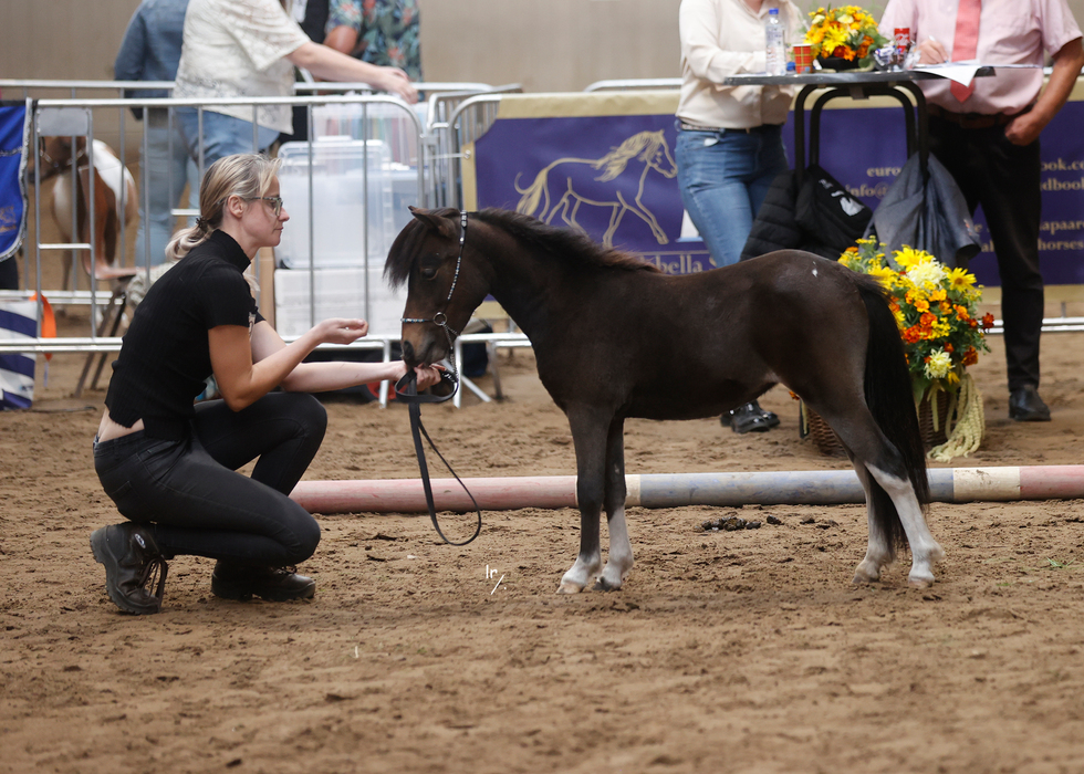 Goud 1ste premie Goedgekeurde hengst Algemeen kampioen Volwassen kampioen BRUIN PINTO 0,80m |