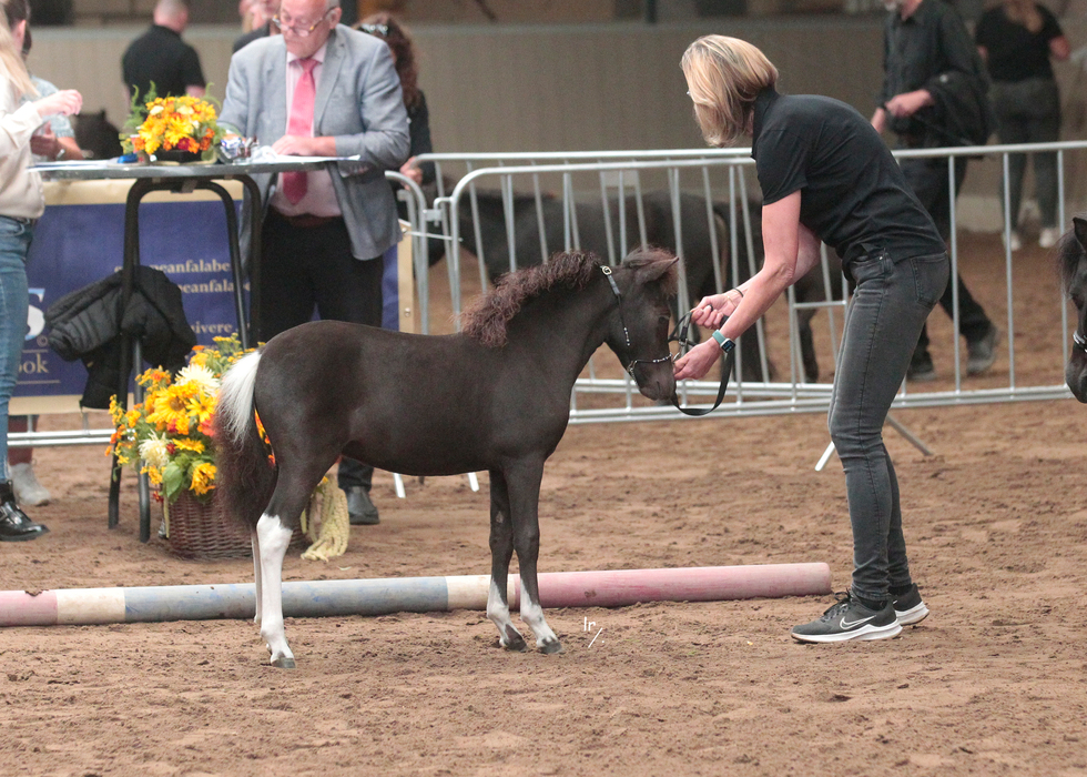 Goud 1ste premie Goedgekeurde hengst ZWART PINTO 0,85m |