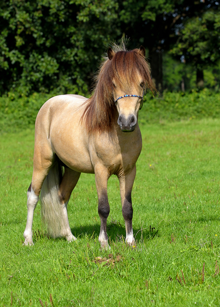 Prachtige kleine hengst van 82 cm in de mooie kleur valk Pinto,