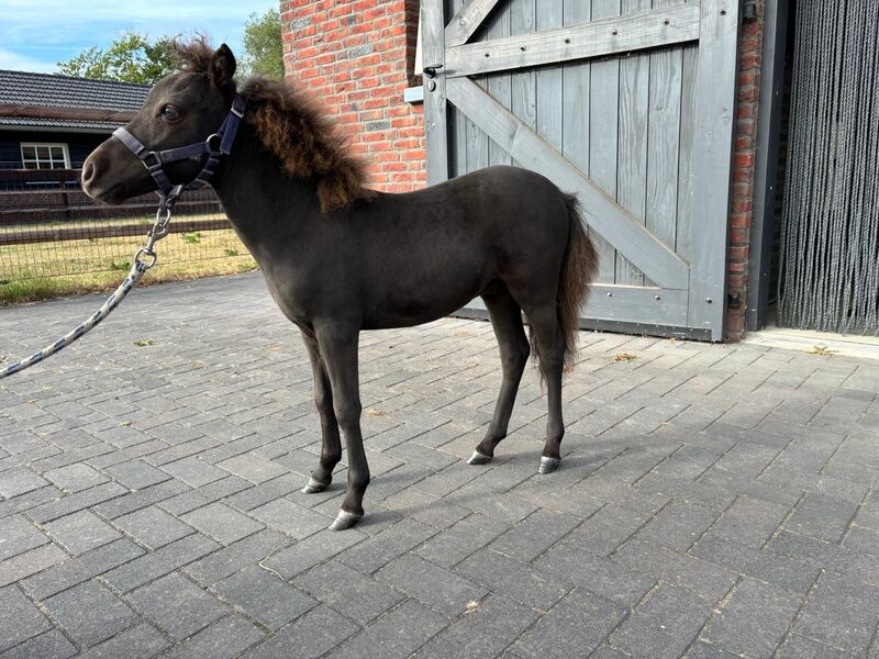 Antonio is a beautiful, elegant, small and correctly built one year old stallion with excellent bloodlines. The pedigree of his dam Amazon of OHF goes back to the famous Falabella stallion Menelek. Amazon also won a first premium at the inspection several times, even when she was 17 years old! Antonio's sire is NOVA Stables Laquan, whose parents both came directly from the famous Toyland stud farm. Antonio has tested positive for Lp (appaloosa-gene). So he will continue to colour to appaloosa. At the 2025 inspection, he took first place with 82 points (first premium/gold)! Several breeders approached us because they thought he was so beautiful and because he is so small. He will certainly be an asset to breeding. We are offering him for sale for a good home, because we cannot keep all the colts.